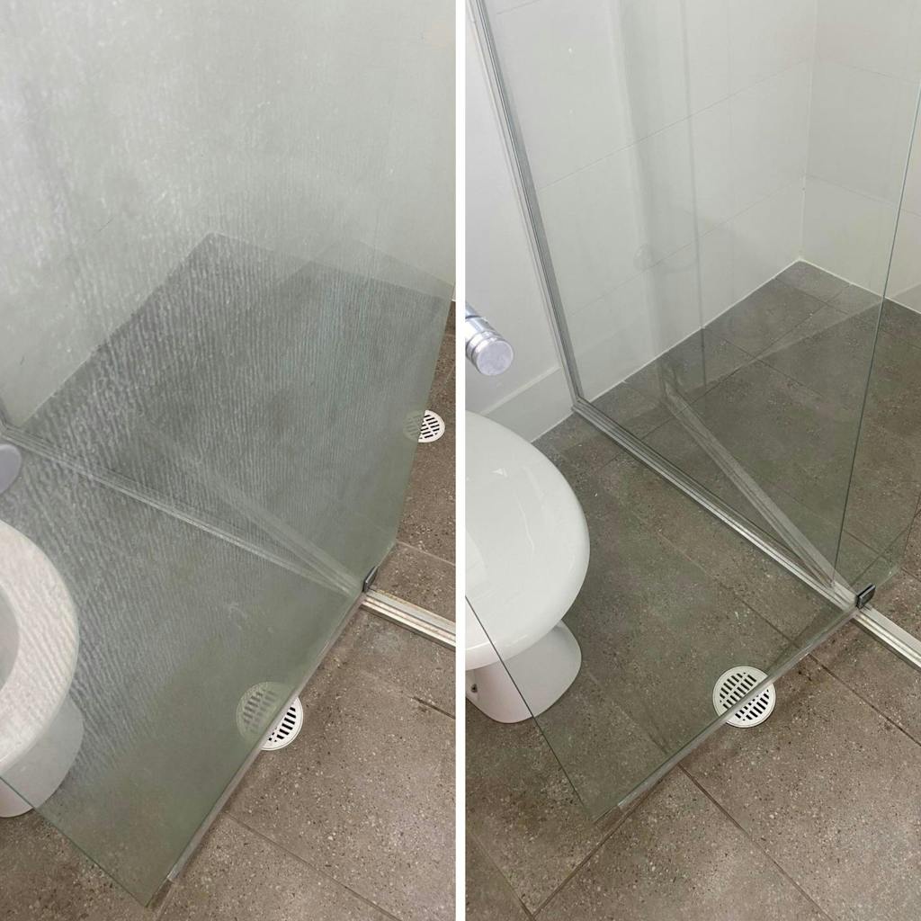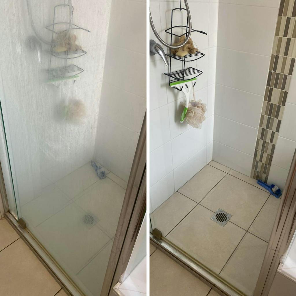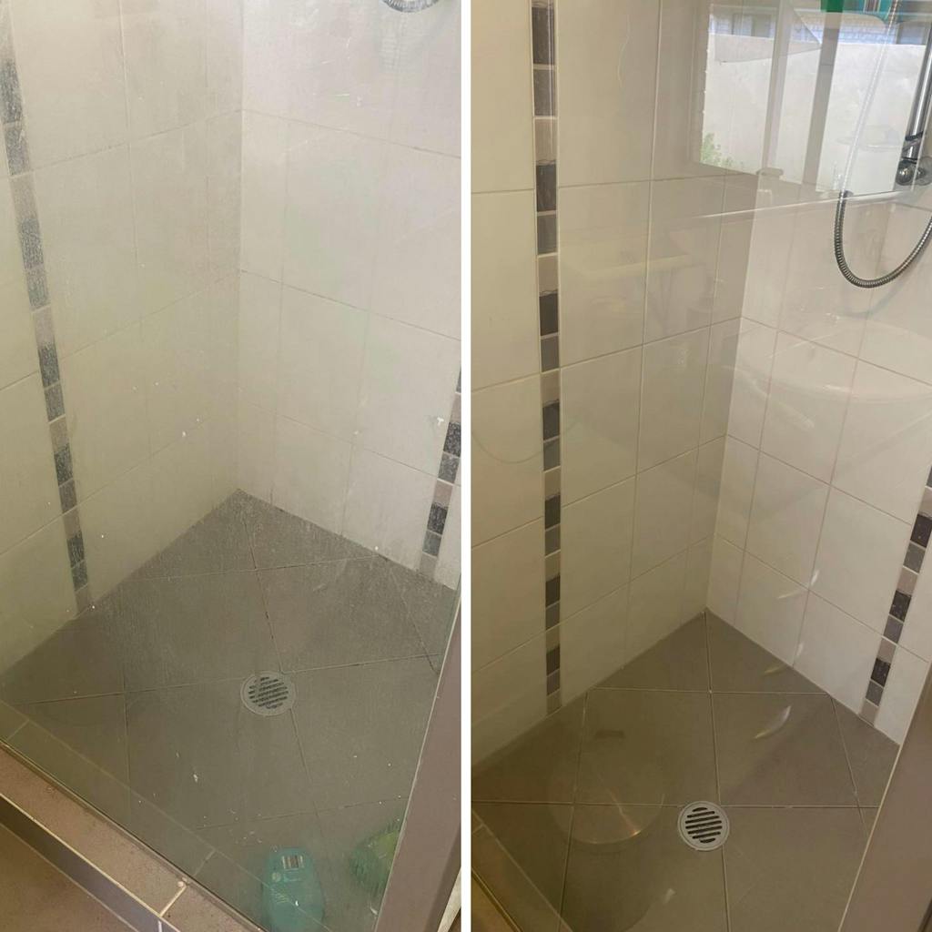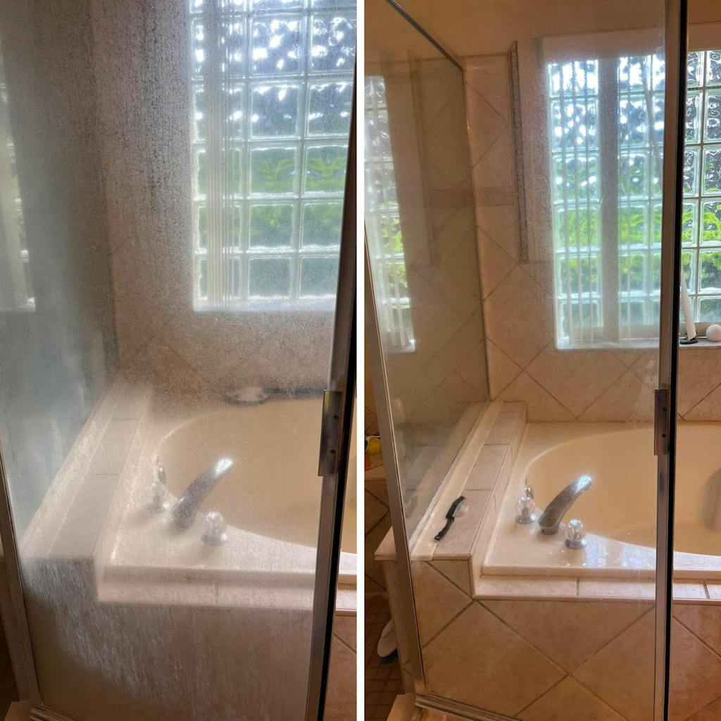 The before and after on the shower enclosure was obvious almost immediately. This helped reduce cloudy buildup on the shower enclosure in under 10 minutes. This helped reduce mineral spots on the shower enclosure after one pass.